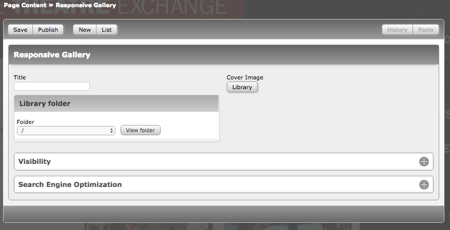 - If new, fill in fields “title" and select cover image (you will either choose one from library or upload one)